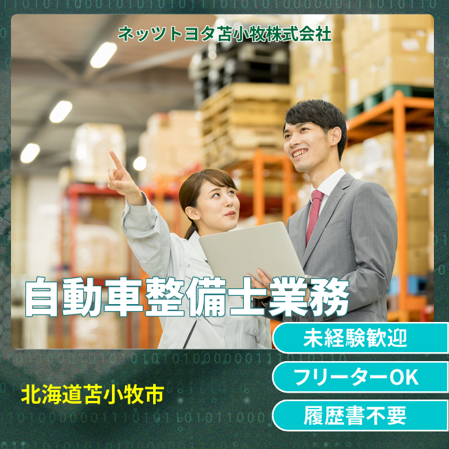 会社負担のトヨタ独自の資格・教育制度があり、入社後資格取得が可能です。また、フロントや営業等へのキャリアチェンジも可能です。 企業名 ネッツトヨタ苫小牧株式会社契約社員求人