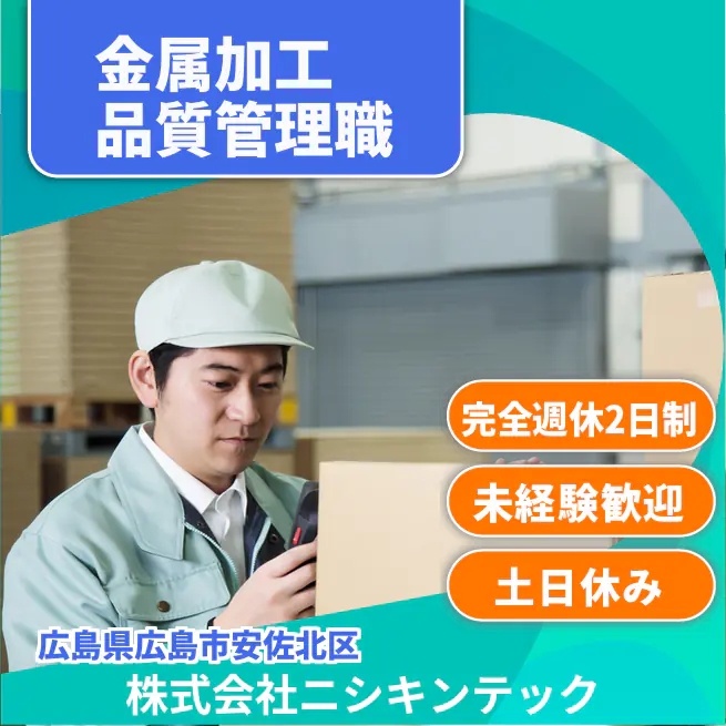 企業 株式会社ニシキンテック 給与詳細 月収例 187,500円 時給例 1,172円 勤務地 広島県広島市安佐北区 仕事内容 広島県内トップシェア!