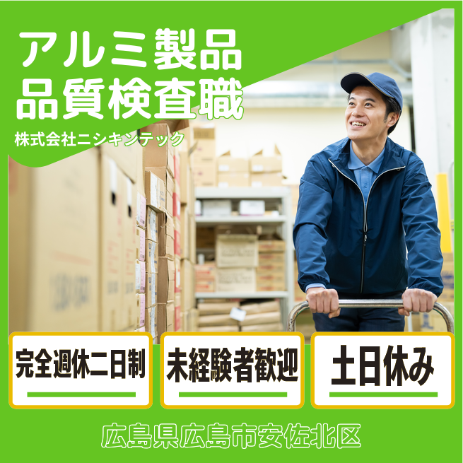 当社製品は広島県内ではトップシェア、その他大阪・福岡・栃木へも営業所を展開しております。高い品質と顧客ニーズに併せてフレキシブルに対応できる事に評価をいただいております。自分が携わった製品をマンションなど街中で目にした時は非常にやりがいを感じる事が出来ます。 企業名 株式会社ニシキンテック正社員求人