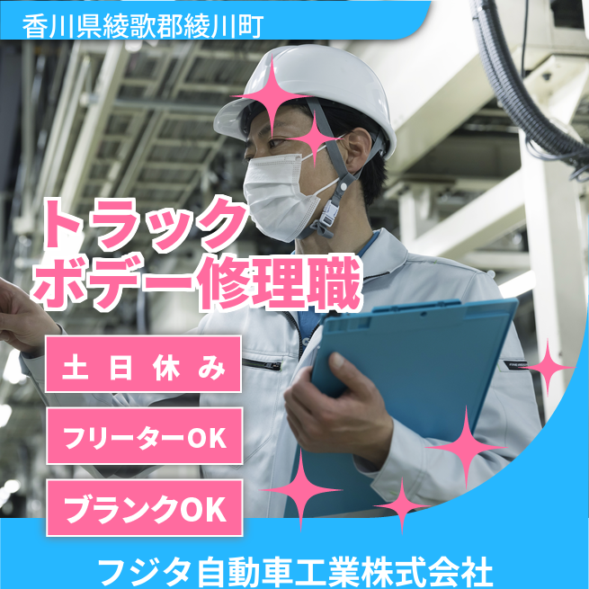 企業 フジタ自動車工業株式会社 給与詳細 月収例 200,216円 時給例 1,251円 勤務地 香川県綾歌郡綾川町 仕事内容 トラックボデーの製造・販売を行う当社での中古トラックボデーの修理のお仕事です。