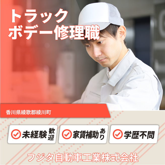 企業 フジタ自動車工業株式会社 給与詳細 月収例 200,216円 時給例 1,251円 勤務地 香川県綾歌郡綾川町 仕事内容 【業務概要】