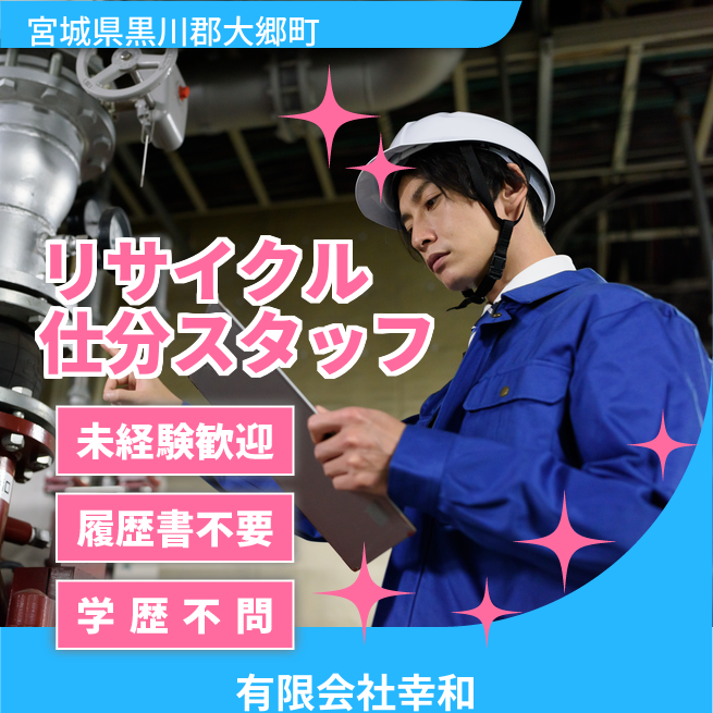 リサイクル作業で社会に貢献できる。丁寧な指導で未経験から挑戦できます。