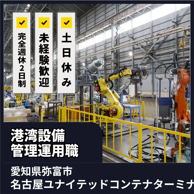 企業 名古屋ユナイテッドコンテナターミナル株式会社 給与詳細 月収例 206,000円 時給例 1,288円 勤務地 愛知県弥富市 仕事内容 名古屋港を支える設備管理スタッフ