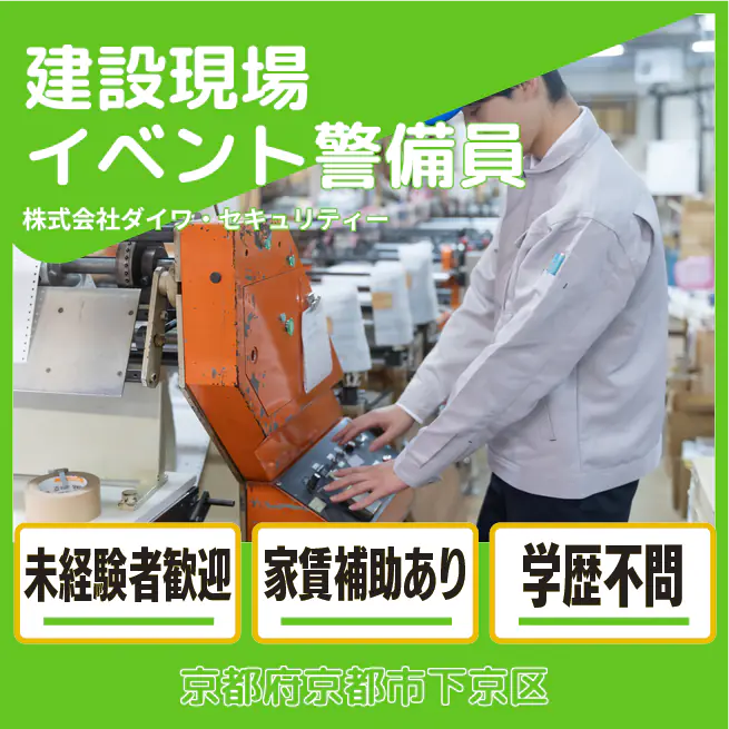 企業 株式会社ダイワ・セキュリティー 給与詳細 月収例 250,000円 時給例 1,563円 勤務地 京都府京都市下京区 仕事内容 警備業務を取り扱う当社にて建設現場や工事現場、イベント等の警備業務を行っていただきます