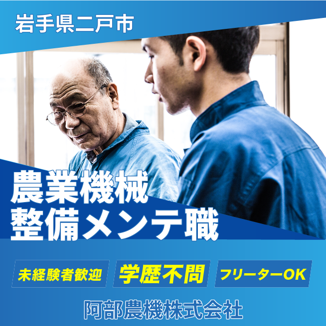 過去の先輩方は飲食店、事務職など、整備未経験の方でも入社いただけます。 企業名 阿部農機株式会社正社員求人