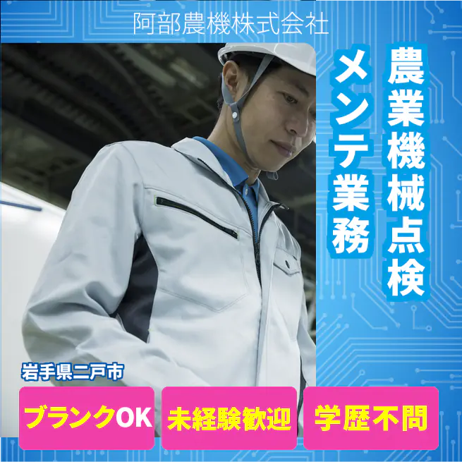 過去の先輩方は飲食店、事務職など、整備未経験の方でも入社いただけます。 企業名 阿部農機株式会社正社員求人