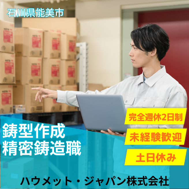 企業 ハウメット・ジャパン株式会社 給与詳細 月収例 207,500円 時給例 1,297円 勤務地 石川県能美市 仕事内容 鋳型作成工として、材料液の作製、測定調整、グラインダーでのバラシ、ロボット操作を行います。