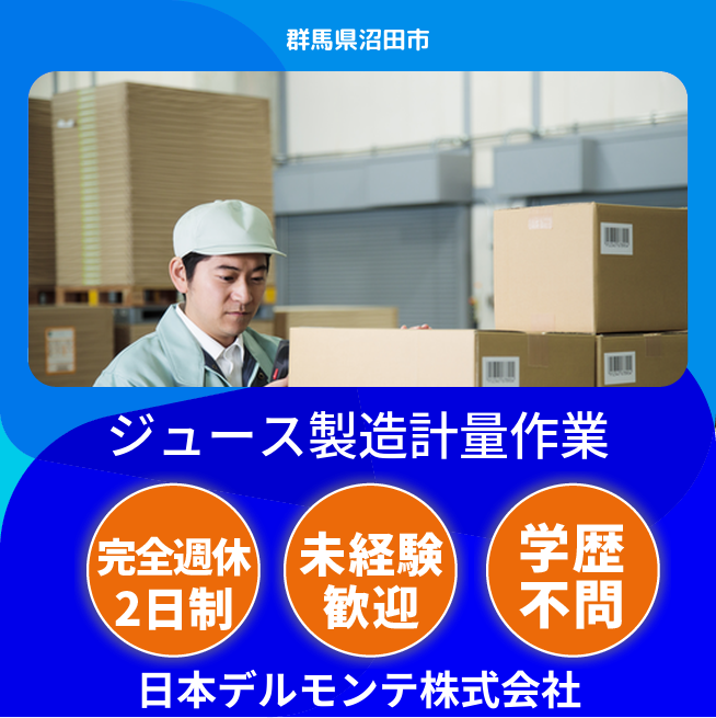 企業 日本デルモンテ株式会社 給与詳細 月収例 178,830円 時給例 1,118円 勤務地 群馬県沼田市 仕事内容 【業務概要】