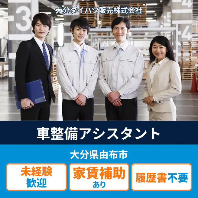 企業 大分ダイハツ販売株式会社 給与詳細 月収例 174,000円 時給例 1,088円 勤務地 大分県由布市 仕事内容 【業務概要】