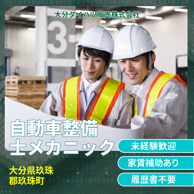 企業 大分ダイハツ販売株式会社 給与詳細 月収例 174,000円 時給例 1,088円 勤務地 大分県玖珠郡玖珠町 仕事内容 【業務概要】