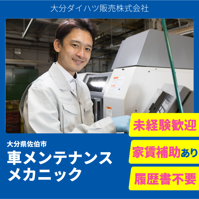 企業 大分ダイハツ販売株式会社 給与詳細 月収例 174,000円 時給例 1,088円 勤務地 大分県佐伯市 仕事内容 『業務概要』