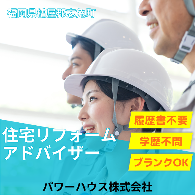 企業 パワーハウス株式会社 給与詳細 月収例 250,000円 時給例 1,563円 勤務地 福岡県糟屋郡志免町 仕事内容 「外壁や内装、キッチンなど、リフォーム提案をしてみたい!」