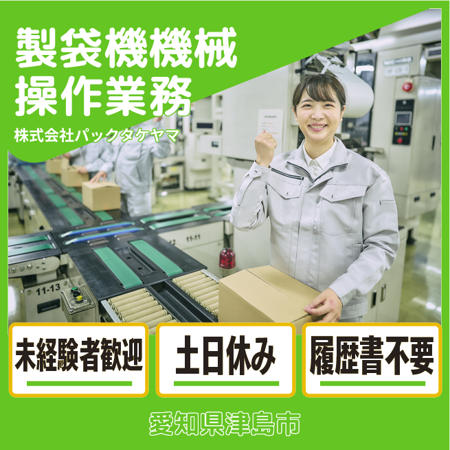 企業 株式会社パックタケヤマ 給与詳細 月収例 178,000円 時給例 1,113円 勤務地 愛知県津島市 仕事内容 機械オペレーターとして、紙袋の製造を行っていただきます。