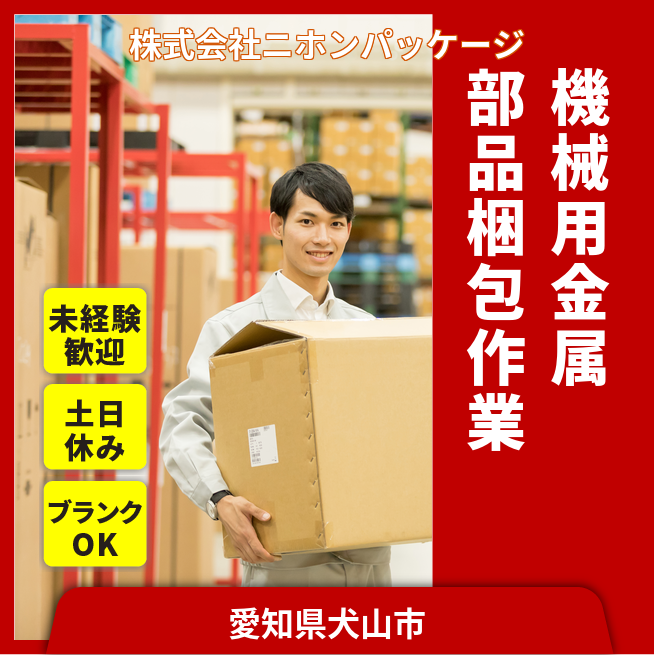 企業 株式会社ニホンパッケージ 給与詳細 月収例 190,000円 時給例 1,188円 勤務地 愛知県犬山市 仕事内容 ◎おすすめポイント!
