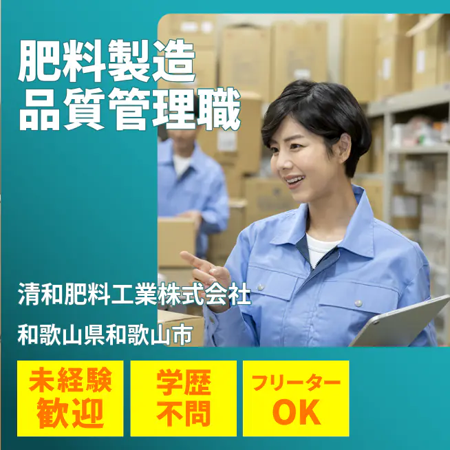 企業 清和肥料工業株式会社 給与詳細 月収例 177,866円 時給例 1,112円 勤務地 和歌山県和歌山市 仕事内容 【業務概要】