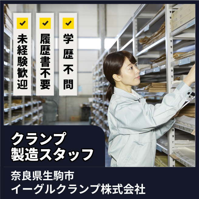 企業 イーグルクランプ株式会社 給与詳細 月収例 211,000円 時給例 1,319円 勤務地 奈良県生駒市 仕事内容 【業務概要】