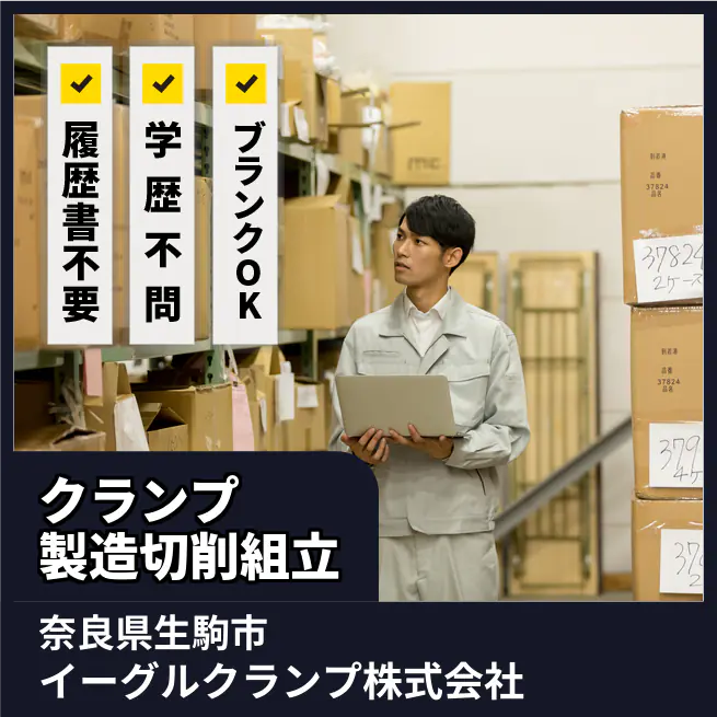 企業 イーグルクランプ株式会社 給与詳細 月収例 211,000円 時給例 1,319円 勤務地 奈良県生駒市 仕事内容 【業務概要】