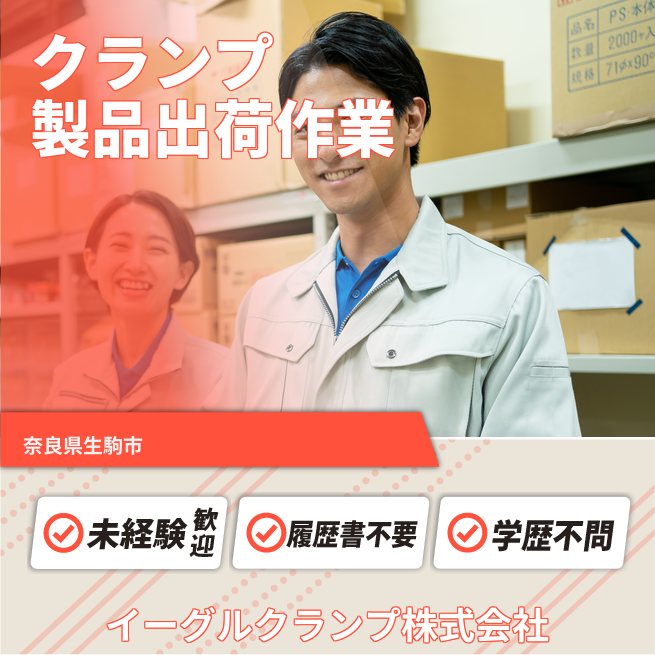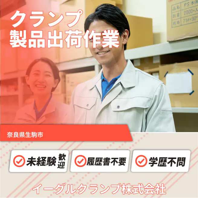 平日休み【クランプ製品の出荷を若手が支える】賞与3回~/多彩な業務で成長可能