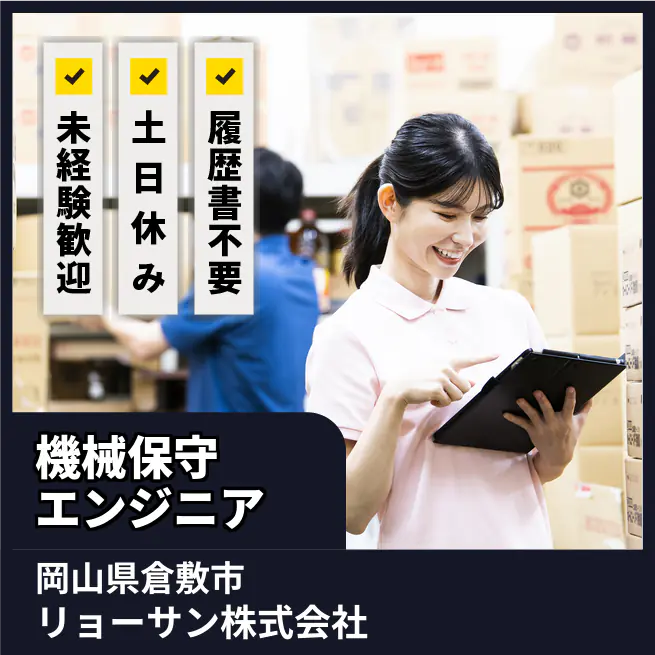 企業 リョーサン株式会社 給与詳細 月収例 180,000円 時給例 1,125円 勤務地 岡山県倉敷市 仕事内容 【概要】