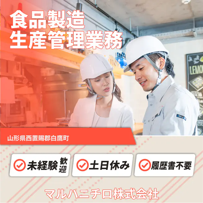 企業 マルハニチロ株式会社 給与詳細 月収例 213,000円 時給例 1,331円 勤務地 山形県西置賜郡白鷹町 仕事内容 フリーズドライ食品の製造と生産管理を行っていただきます。