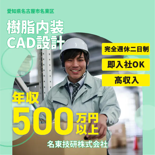 企業 名東技研株式会社 給与詳細 年収例 5,000,000円 月収例 285,000円 勤務地 愛知県名古屋市名東区 仕事内容 【概要】