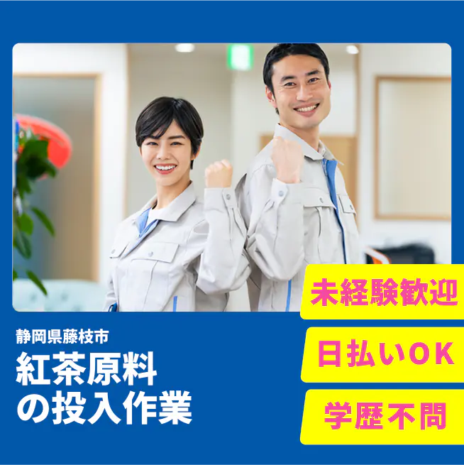 ※実際と異なるケースもございます。 交通費 支給あり 応募の流れ 本ページ内<応募する>ボタンより、必要項目をご入力の上、ご応募ください。 勤務地 【勤務地】静岡県藤枝市宮原 勤務時間 【勤務地】①08:00~17:00 休憩60分