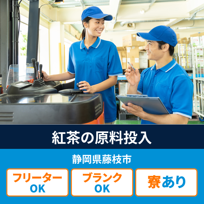 給与詳細 月収例 270,000円 日給例 11,200円 勤務地 静岡県藤枝市 仕事内容 【紅茶の製造工程(原料投入)】