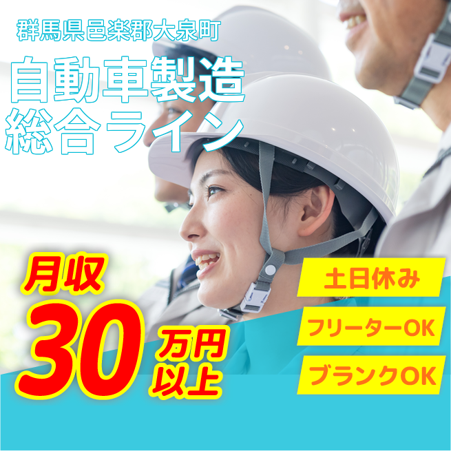 ※実際と異なるケースもございます。 交通費 支給あり 応募の流れ 本ページ内<応募する>ボタンより、必要項目をご入力の上、ご応募ください。 勤務地 【勤務地】群馬県邑楽郡大泉町いずみ1丁目 勤務時間 【勤務地】①06:30~15:15 休憩70分