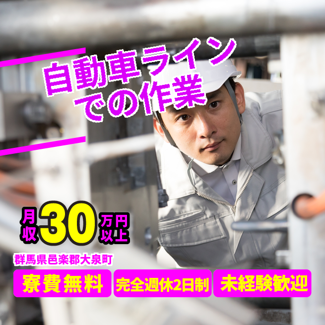 ※実際と異なるケースもございます。 交通費 支給あり 応募の流れ 本ページ内<応募する>ボタンより、必要項目をご入力の上、ご応募ください。 勤務地 【勤務地】群馬県邑楽郡大泉町いずみ1丁目 勤務時間 【勤務地】①06:30~15:15 休憩70分
