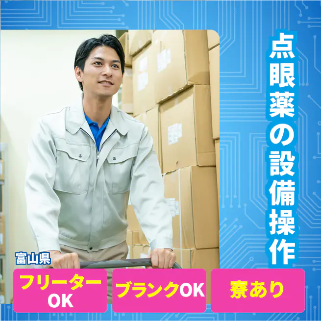 給与詳細 月収例 260,000円 日給例 12,000円 勤務地 石川県羽咋郡宝達志水町 仕事内容 【業務概要】点眼薬の調剤・充填・検査・包装など生産設備オペレーション