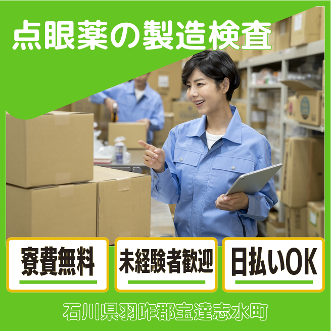 点眼薬の調剤・充填・検査・包装・準備作業など、生産設備オペレーション。