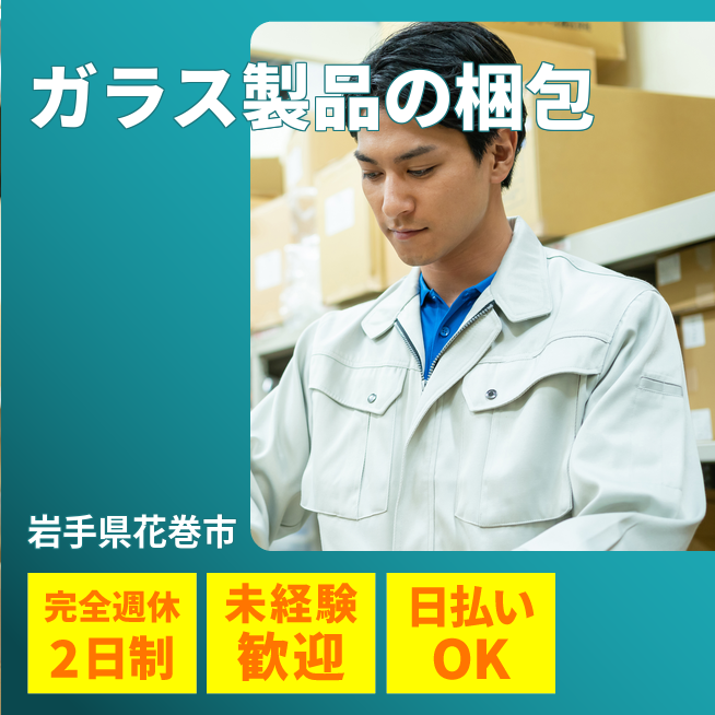 給与詳細 月収例 210,000円 時給例 1,150円 勤務地 岩手県花巻市 仕事内容 【硝子の切断・梱包、ラインからの製品取り上げ】