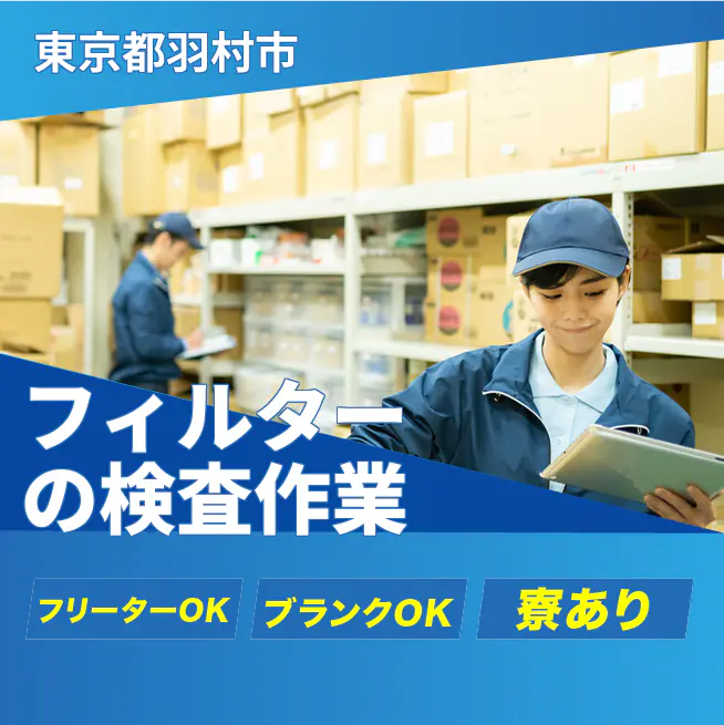 給与詳細 月収例 200,000円 日給例 11,200円 勤務地 東京都羽村市 仕事内容 【業務概要】