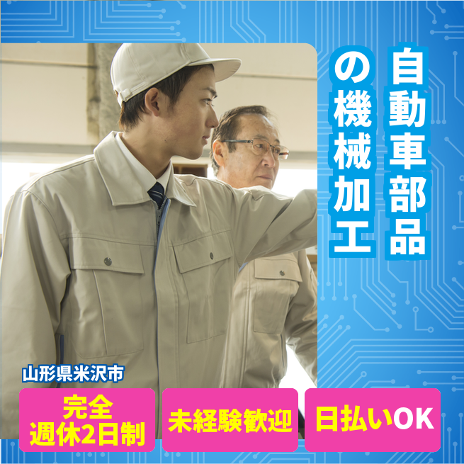 ※実際と異なるケースもございます。 交通費 支給あり 応募の流れ 本ページ内<応募する>ボタンより、必要項目をご入力の上、ご応募ください。 勤務地 【勤務地】山形県米沢市八幡原3丁目 勤務時間 【勤務地】①07:00~15:30 休憩45分