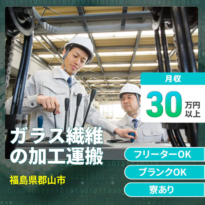 ガラス繊維(グラスファイバー)の加工や積み込み、運搬作業を担当。マシンオペレーター業務も含まれます。