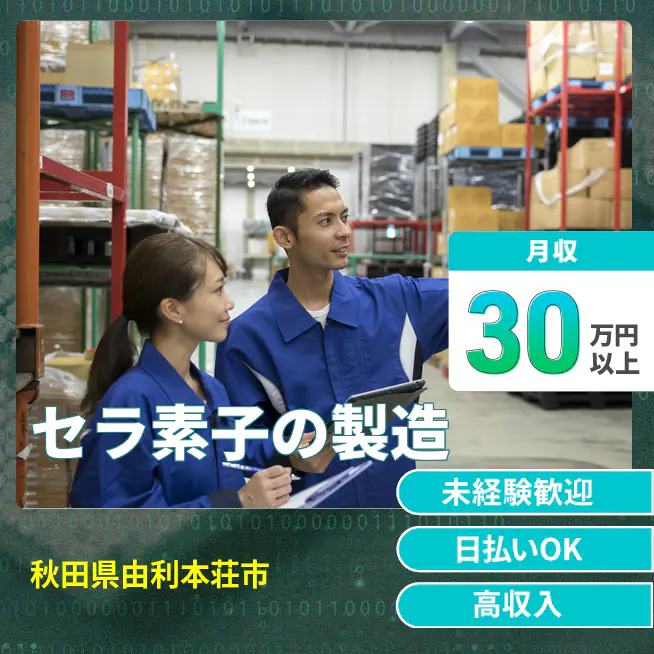 給与詳細 月収例 320,000円 時給例 1,650円 勤務地 秋田県由利本荘市 仕事内容 【セラミックコンデンサ製造オペレーター】