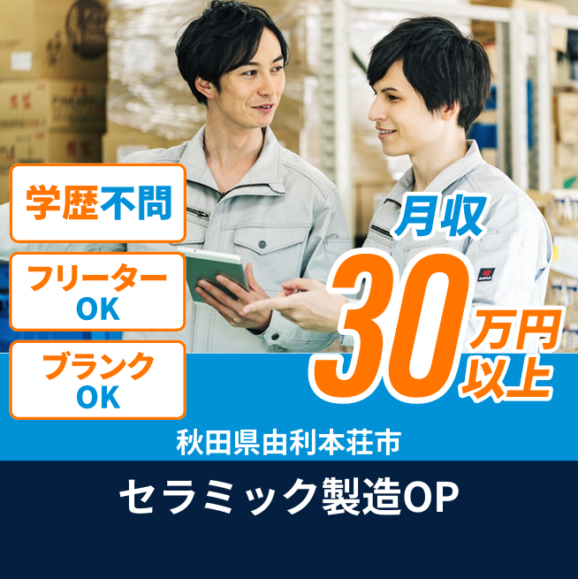 給与詳細 月収例 320,000円 時給例 1,650円 勤務地 秋田県由利本荘市 仕事内容 【概要】