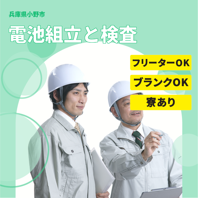 コイン電池の組立オペレーターと検査を担当。クリーンルーム工程を含む精密軽作業です。