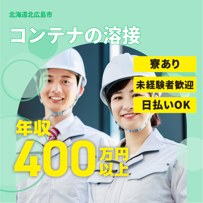 給与詳細 年収例 4,080,000円 月収例 340,000円 勤務地 北海道北広島市 仕事内容 【トラックボディコンテナの溶接(ティグ・アーク)部品取付】