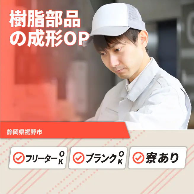 ※実際と異なるケースもございます。 交通費 支給あり 応募の流れ 本ページ内<応募する>ボタンより、必要項目をご入力の上、ご応募ください。 勤務地 【勤務地】静岡県裾野市須山 勤務時間 【勤務地】➀08:15~17:00 休憩45分