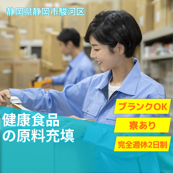 給与詳細 月収例 240,000円 日給例 10,400円 勤務地 静岡県静岡市駿河区 仕事内容 【健康食品の製造(原料セット・ボタン操作・秤量・充填・打錠・検品)】