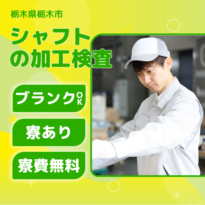 給与詳細 月収例 260,000円 日給例 10,800円 勤務地 栃木県栃木市 仕事内容 【ドライブシャフトの加工・検査】