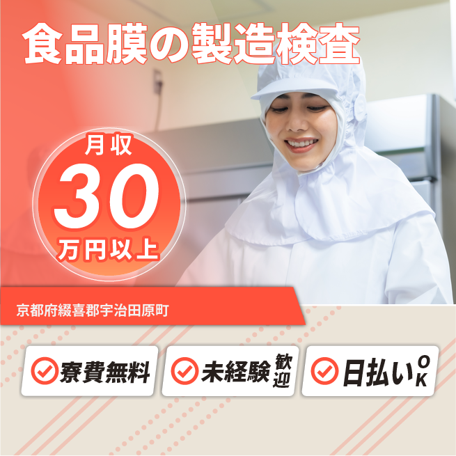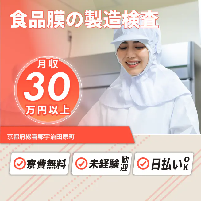 給与詳細 月収例 300,000円 日給例 12,000円 勤務地 京都府綴喜郡宇治田原町 仕事内容 【業務内容】