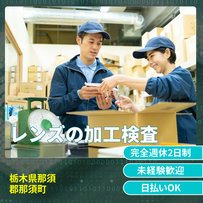 5kgほどのレンズ加工マシンオペレーター/レンズ洗浄/部品の運搬業務 /部品の組付けや調整作業(電動ドライバーを使用)慣れると複数台マシン担当/検査