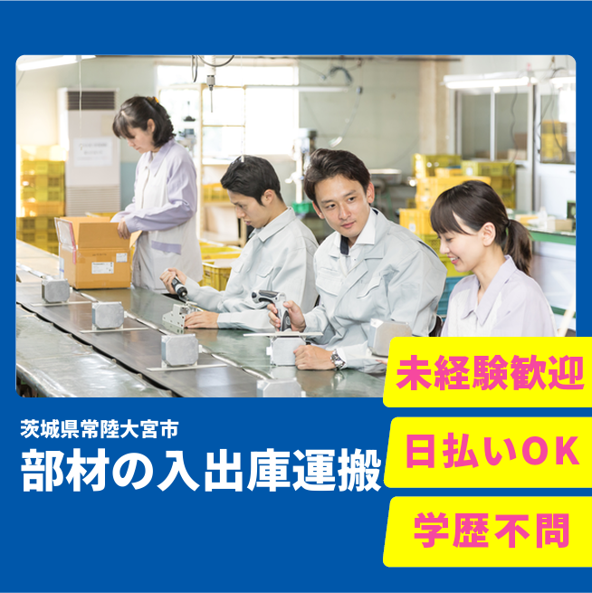 ※実際と異なるケースもございます。 交通費 支給あり 応募の流れ 本ページ内<応募する>ボタンより、必要項目をご入力の上、ご応募ください。 勤務地 【勤務地】茨城県常陸大宮市上岩瀬 勤務時間 【勤務地】①08:30~17:40 休憩70分
