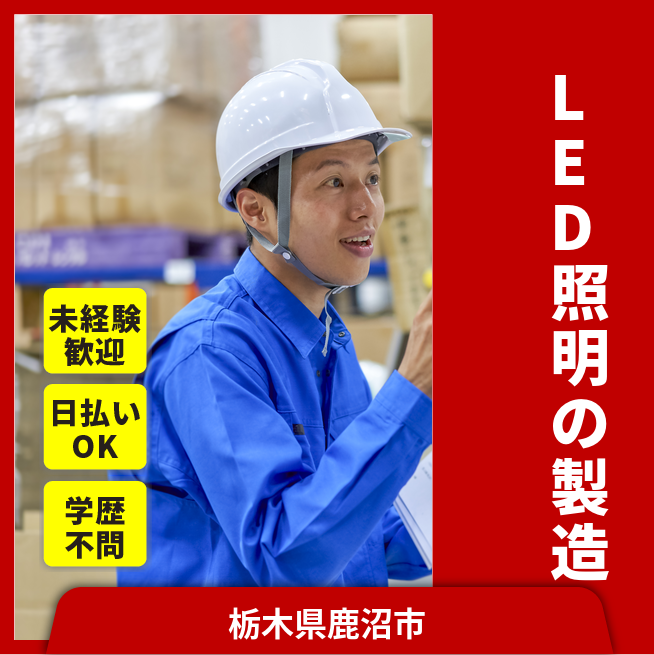 給与詳細 月収例 230,000円 時給例 1,073円 勤務地 栃木県鹿沼市 仕事内容 【LED蛍光灯の組立・検査・梱包・はんだづけのお仕事です】