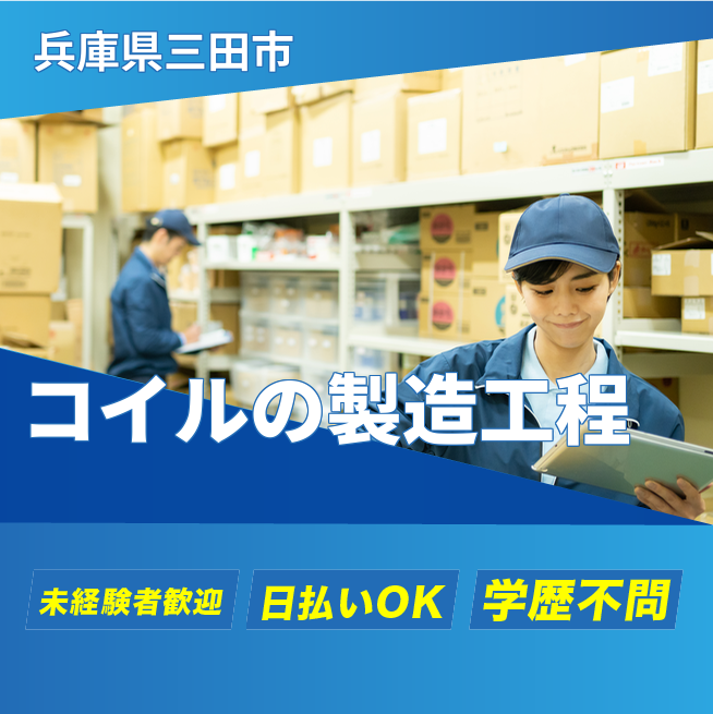 ※実際と異なるケースもございます。 交通費 支給あり 応募の流れ 本ページ内<応募する>ボタンより、必要項目をご入力の上、ご応募ください。 勤務地 【勤務地】兵庫県三田市テクノパーク 勤務時間 【勤務地】①08:30~19:30 休憩60分