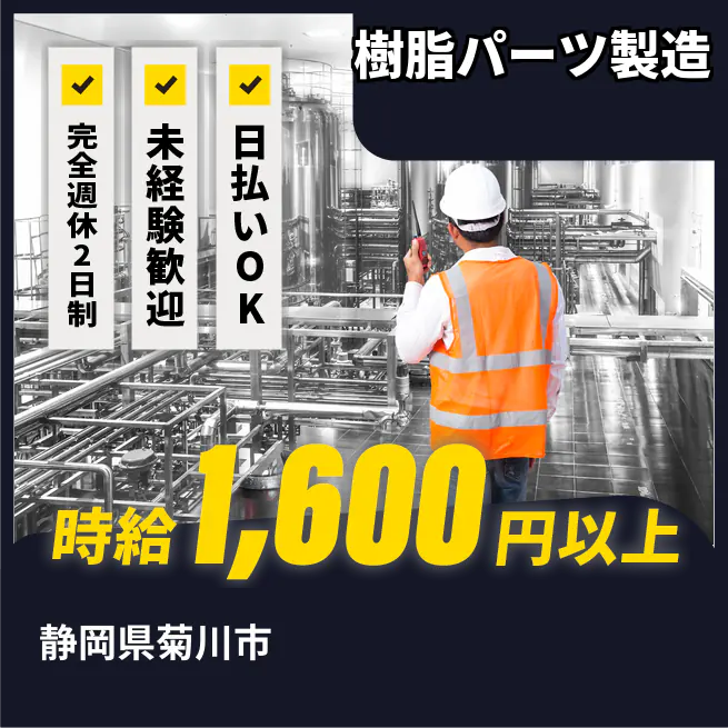 給与詳細 月収例 270,000円 時給例 1,650円 勤務地 静岡県菊川市 仕事内容 【概要】