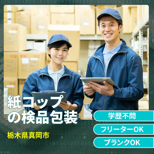 紙コップ製造工場で検品・機械オペを行います。
