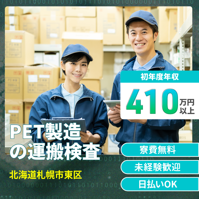 ※実際と異なるケースもございます。 交通費 支給あり 応募の流れ 本ページ内<応募する>ボタンより、必要項目をご入力の上、ご応募ください。 勤務地 【勤務地】北海道札幌市東区中沼町 勤務時間 【勤務地】①08:00~16:05